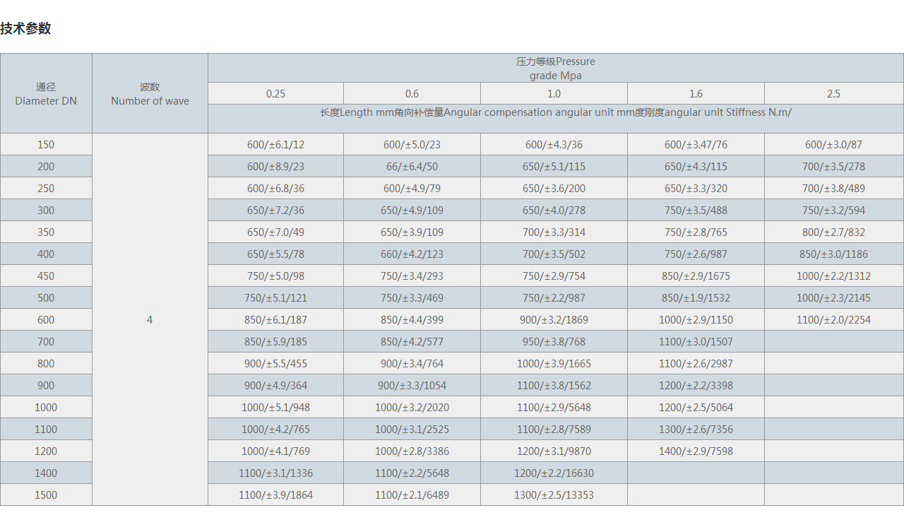 長(zhǎng)度Length mm角向補(bǔ)償量Angular compensation angular unit mm度剛度angular unit Stiffness N.m/