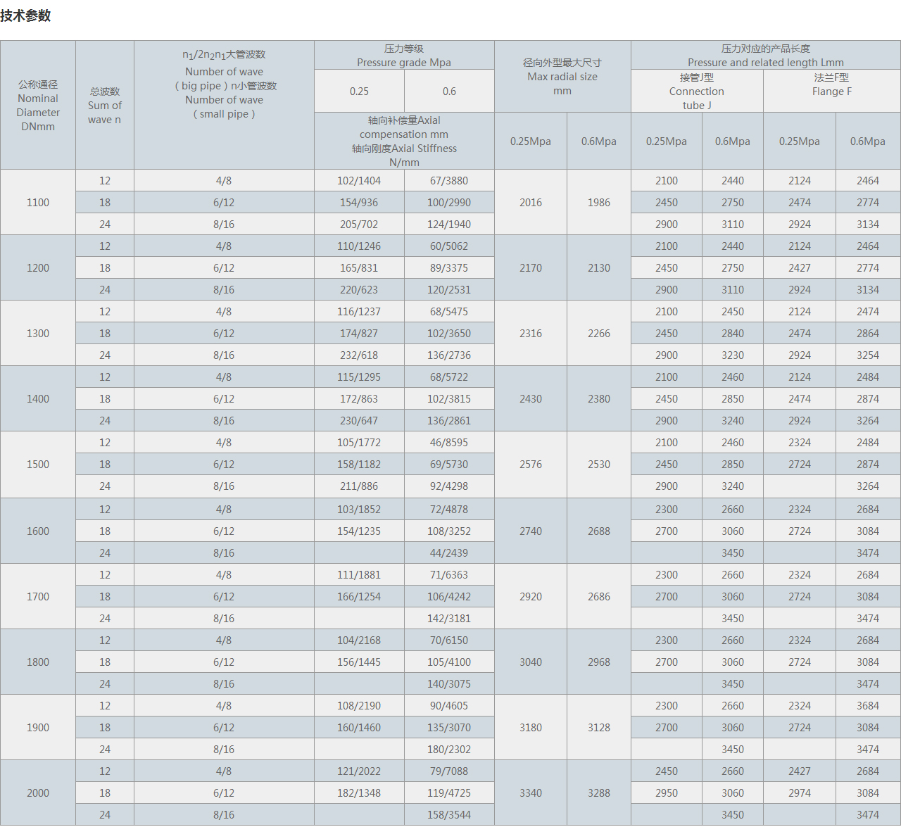 軸向補(bǔ)償量Axial compensation mm 軸向剛度Axial Stiffness N/mm |