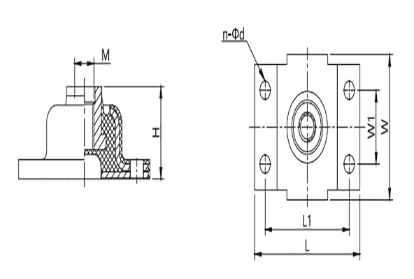 EA型橡膠避震器平置使用時,橫向穩(wěn)定性好。當承受較大沖擊時,可自動限位保護,同時對共振峰的抑制能力很強,對瞬態(tài)沖擊響應瞬時過度工況等引起的自振能迅速消失,設備不致出現(xiàn)晃動。該產品在較寬的干擾頻率范圍內有相當明顯的隔振效果,能適用于各類陸地、船用機械設備,如柴油機、風機、水泵、空壓機、空調機、儀器儀表等中、小型機械設備的隔振。對有水平擾力的機械設備,使用本隔振器能取得良好的隔振效果。